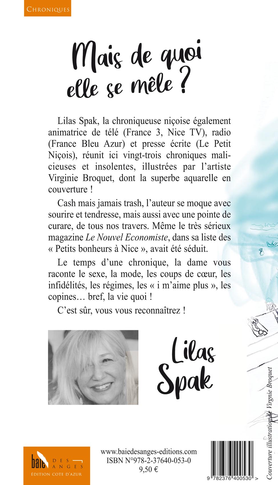 Lilas Spak est une chroniqueuse niçoise, également animatrice de télé (France 3, Nice TV), radio (France Bleu Azur) et presse écrite (Le Petit Niçois)… Elle vit et travaille sur la Côte d’Azur et plus exactement à Nice dans un “appartement avec vue” qui lui inspire ses chroniques et lui permet de se ressourcer entre deux reportages !