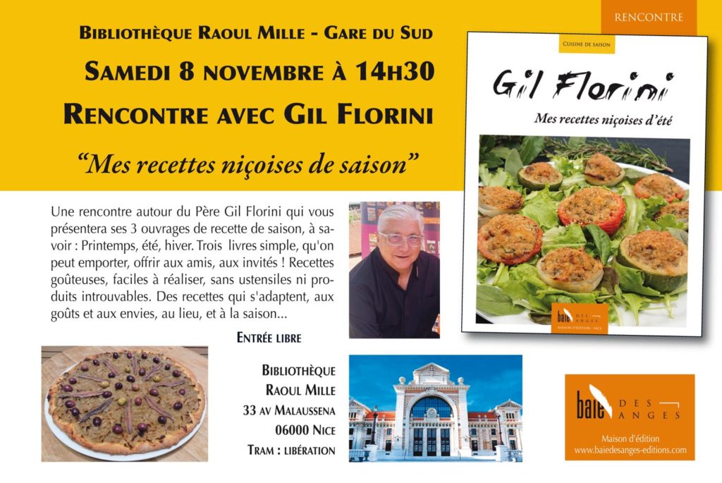 Une rencontre autour du Père Gil Florini qui vous présentera ses 3 ouvrages de recette de saison, à savoir : Printemps, été, hiver. Trois livres simple, qu’on peut emporter, offrir aux amis, aux invités ! Recettes goûteuses, faciles à réaliser, sans ustensiles ni produits introuvables. Des recettes qui s’adaptent, aux goûts et aux envies, au lieu, et à la saison…